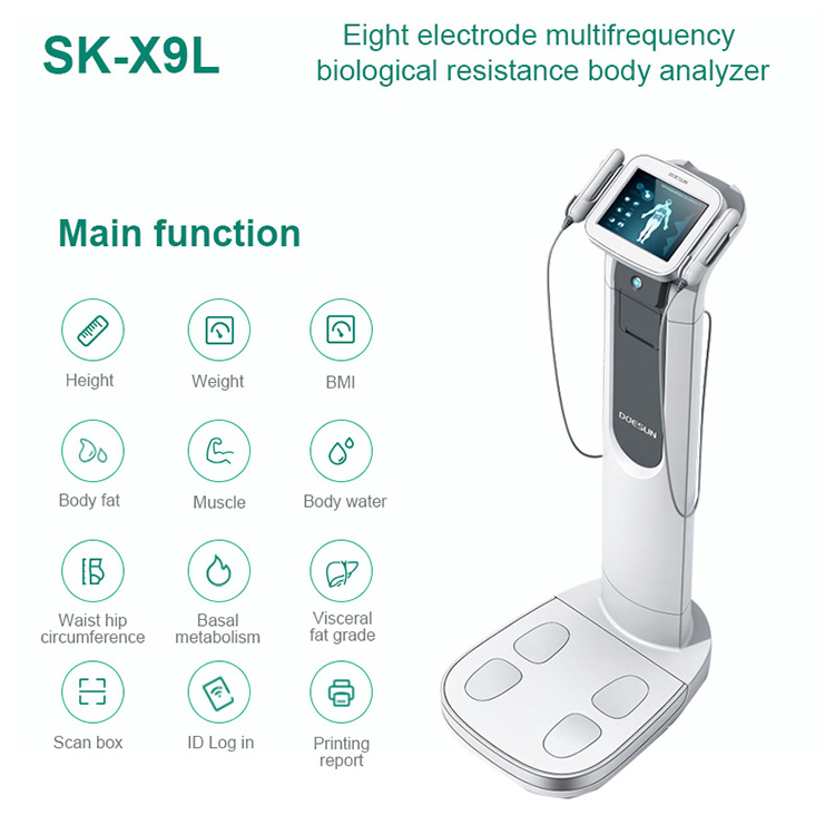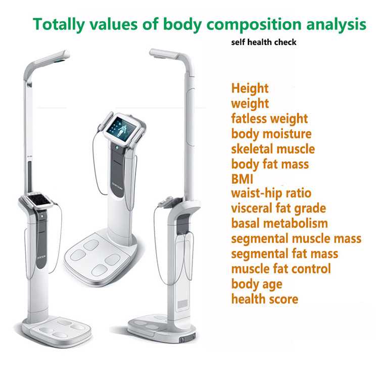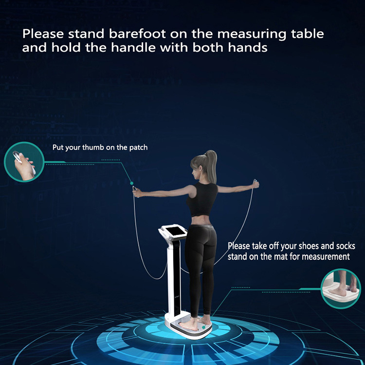 | ಅಳತೆ ಯೋಜನೆ | ಎತ್ತರ, ತೂಕ, ಕೊಬ್ಬುರಹಿತ ತೂಕ, ದೇಹದ ತೇವಾಂಶ, ಅಸ್ಥಿಪಂಜರದ ಸ್ನಾಯು, ದೇಹದ ಕೊಬ್ಬಿನ ದ್ರವ್ಯರಾಶಿ, BMI, ದೇಹದ ಕೊಬ್ಬಿನ ಶೇಕಡಾವಾರು, ಸೊಂಟ-ಸೊಂಟದ ಅನುಪಾತ, ಒಳಾಂಗಗಳು ಕೊಬ್ಬಿನ ದರ್ಜೆ, ತಳದ ಚಯಾಪಚಯ, ಸೆಗ್ಮೆಂಟಲ್ ಸ್ನಾಯುವಿನ ದ್ರವ್ಯರಾಶಿ, ಸೆಗ್ಮೆಂಟಲ್ ಕೊಬ್ಬಿನ ದ್ರವ್ಯರಾಶಿ, ಸ್ನಾಯುವಿನ ಕೊಬ್ಬಿನ ನಿಯಂತ್ರಣ, ದೇಹದ ವಯಸ್ಸು ಮತ್ತು ಆರೋಗ್ಯ ಸ್ಕೋರ್ ಅಳತೆ ಮಾಡಲಾಗಿದೆ |