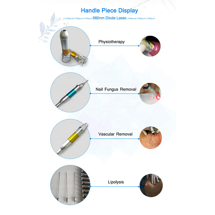 | ಲೇಸರ್ ಪ್ರಕಾರ | ಡಯೋಡ್ ಲೇಸರ್ 980nm (ಗ್ಯಾಲಿಯಂ-ಅಲ್ಯೂಮಿನಿಯಂ-ಆರ್ಸೆನೈಡ್ (GaAlAs) |